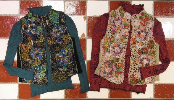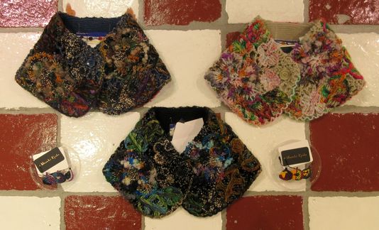 全て刺繍で刺したテキスタイル。様々なファンシーヤーンと