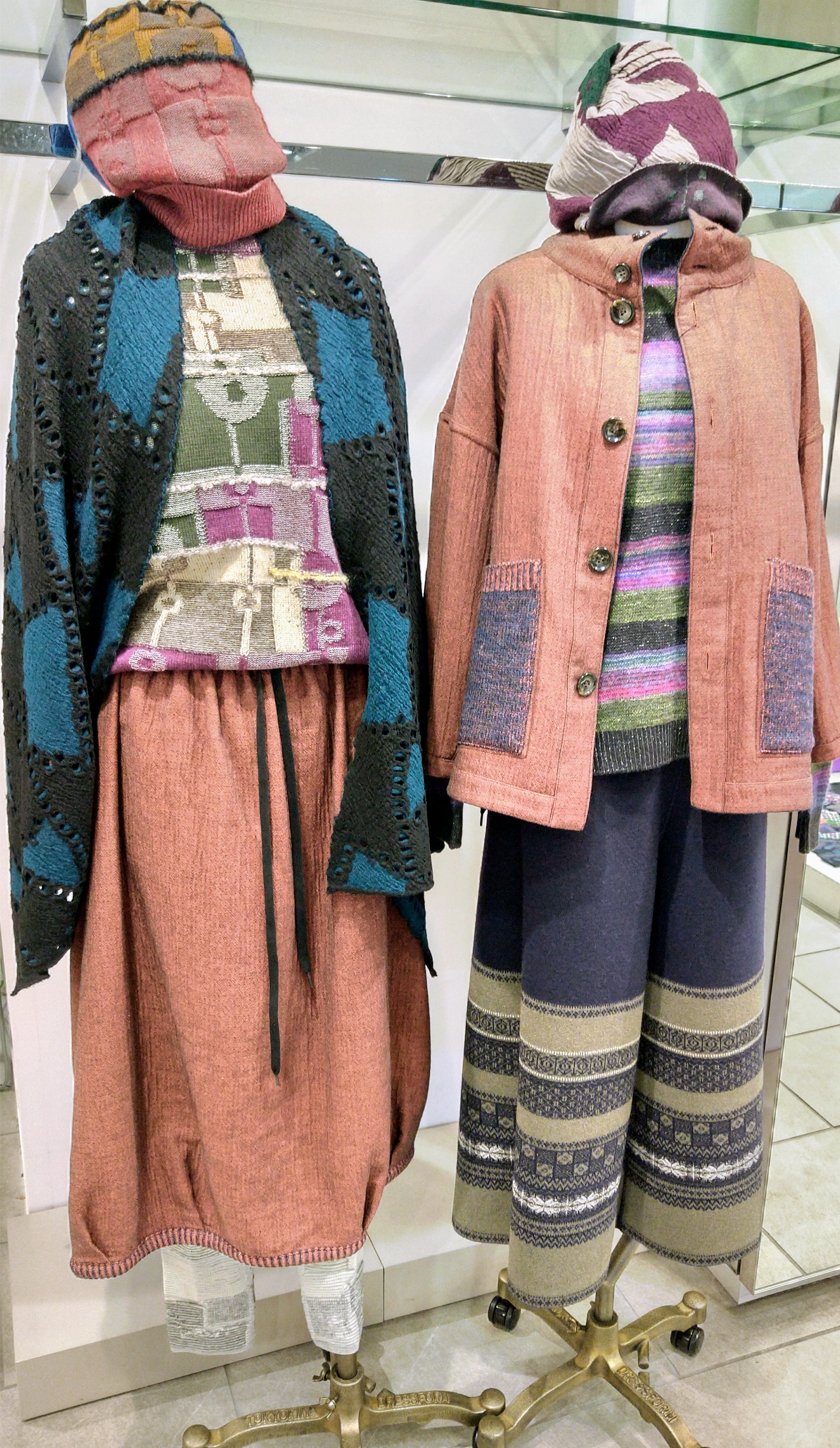 <左> 帽子 ¥11000 ストール ¥24600 ニット ¥39600