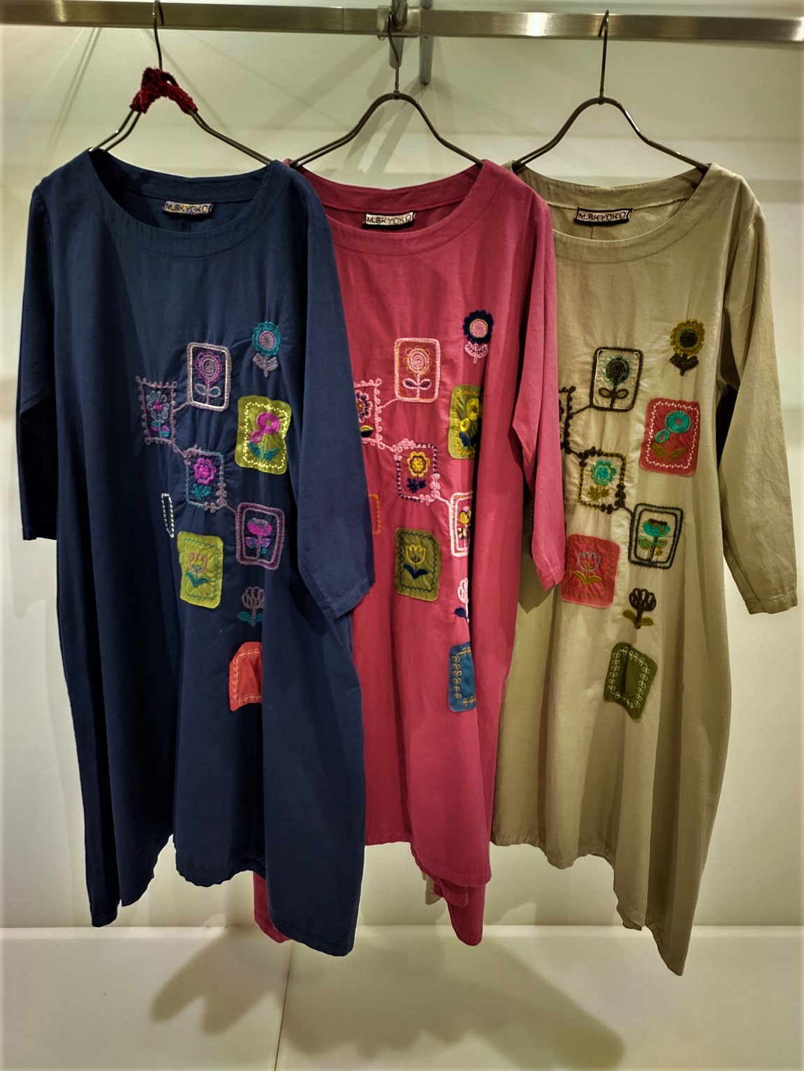 カラフルなパッチワーク刺繡がかわいい1枚です。(ワンピース 39,600円)