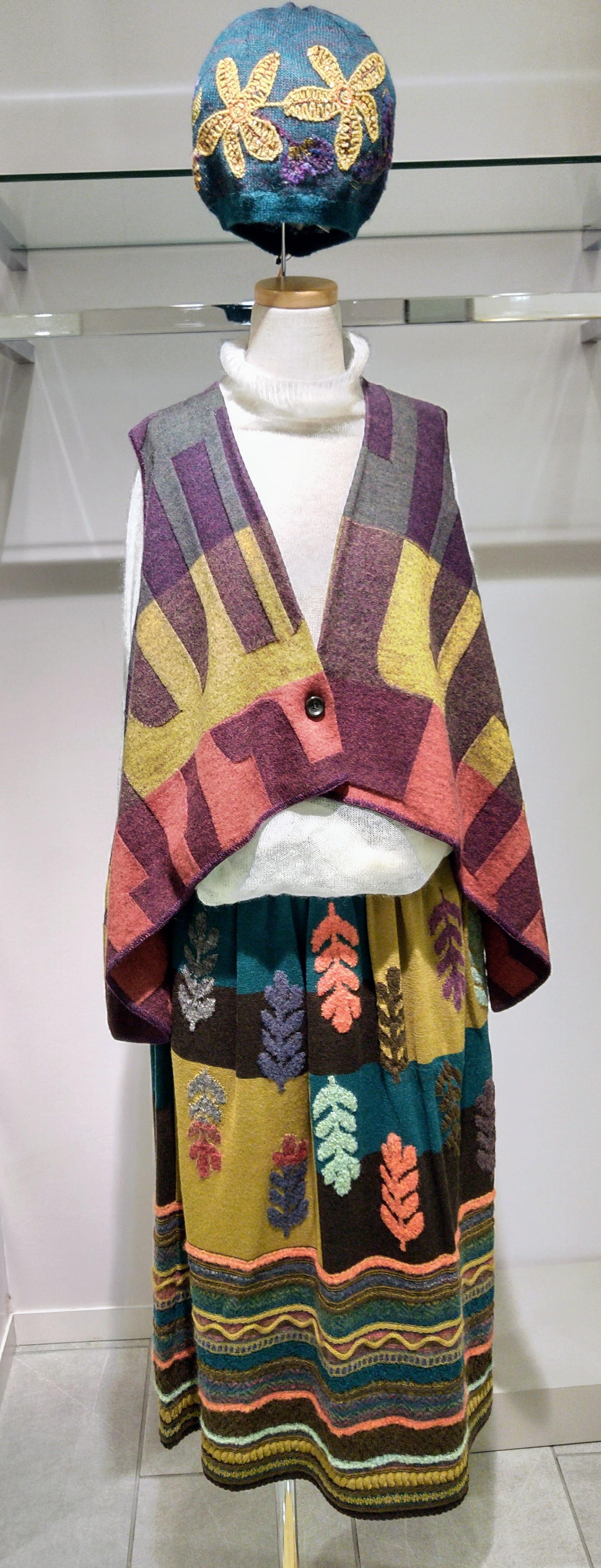 帽子 ¥16500 セーター ¥19800 ベスト ¥26400 スカート ¥42900