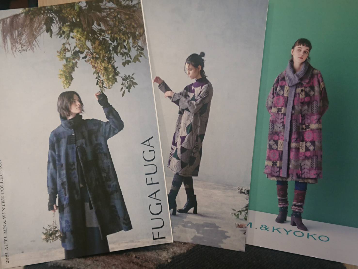 3枚のカタログページの最上段の写真中央のベージュのワンピースの色違いパープルも