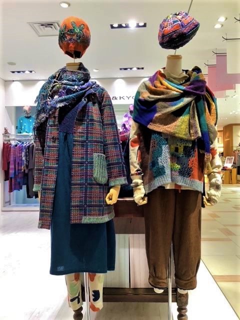 ニットベストとパンツはリバーシブルで2着分楽しめます!柔らかくてとても軽く暖かいです。左側コートもリバーシブルですので色々なコーディネートが楽しめます。右側 帽子¥12.100ストール¥25.300ベスト¥37.400花柄カットソー¥33.000パンツ¥44.000全て税込み