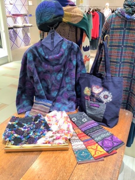 花柄プルーオーバーはコットンベースにウールで柄を書いた人気シリーズです。帽子¥15.400プルオーバー¥31.900バッグ¥17.600全て税込み