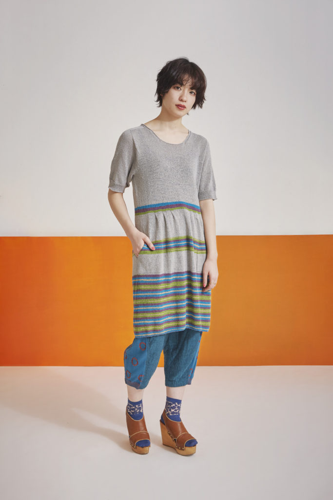 胸元は無地ですっきり、裾にかけて明るい配色のマルチボーダーは