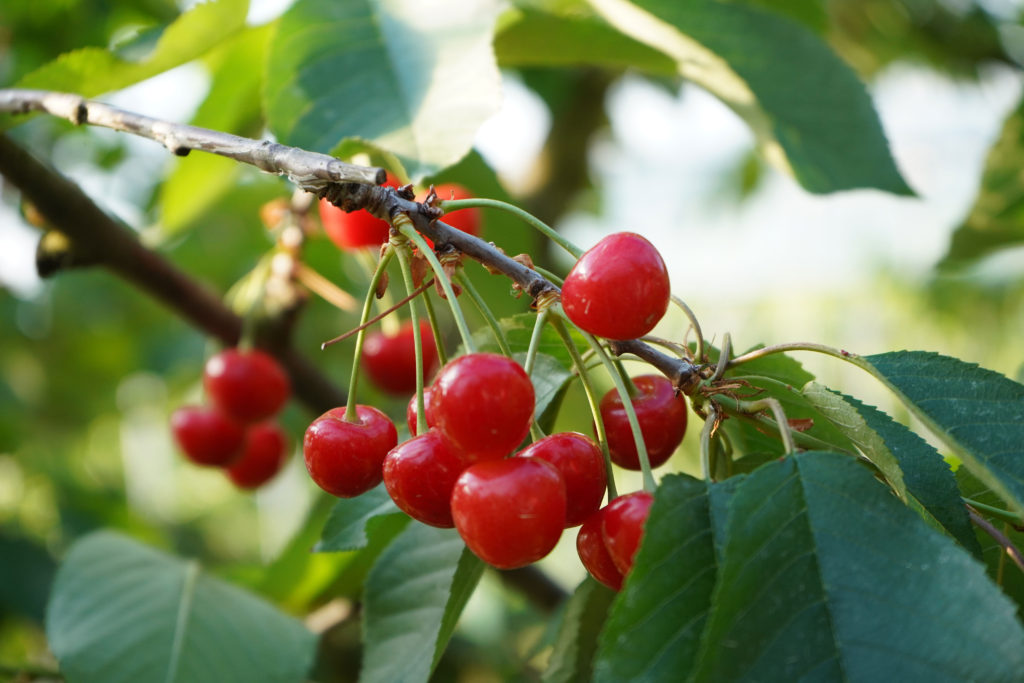 赤く輝く宝石のような、さくらんぼが至るところで見られます。